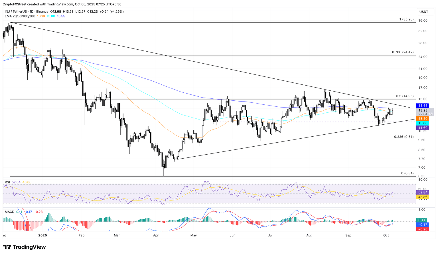 - Injective se acerca al vértice de un patrón de triángulo simétrico en el gráfico diario.