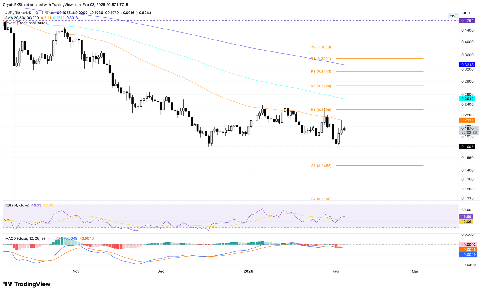 En un retroceso, el soporte clave para JUP sigue siendo el mínimo del 18 de diciembre en 0.1695$.