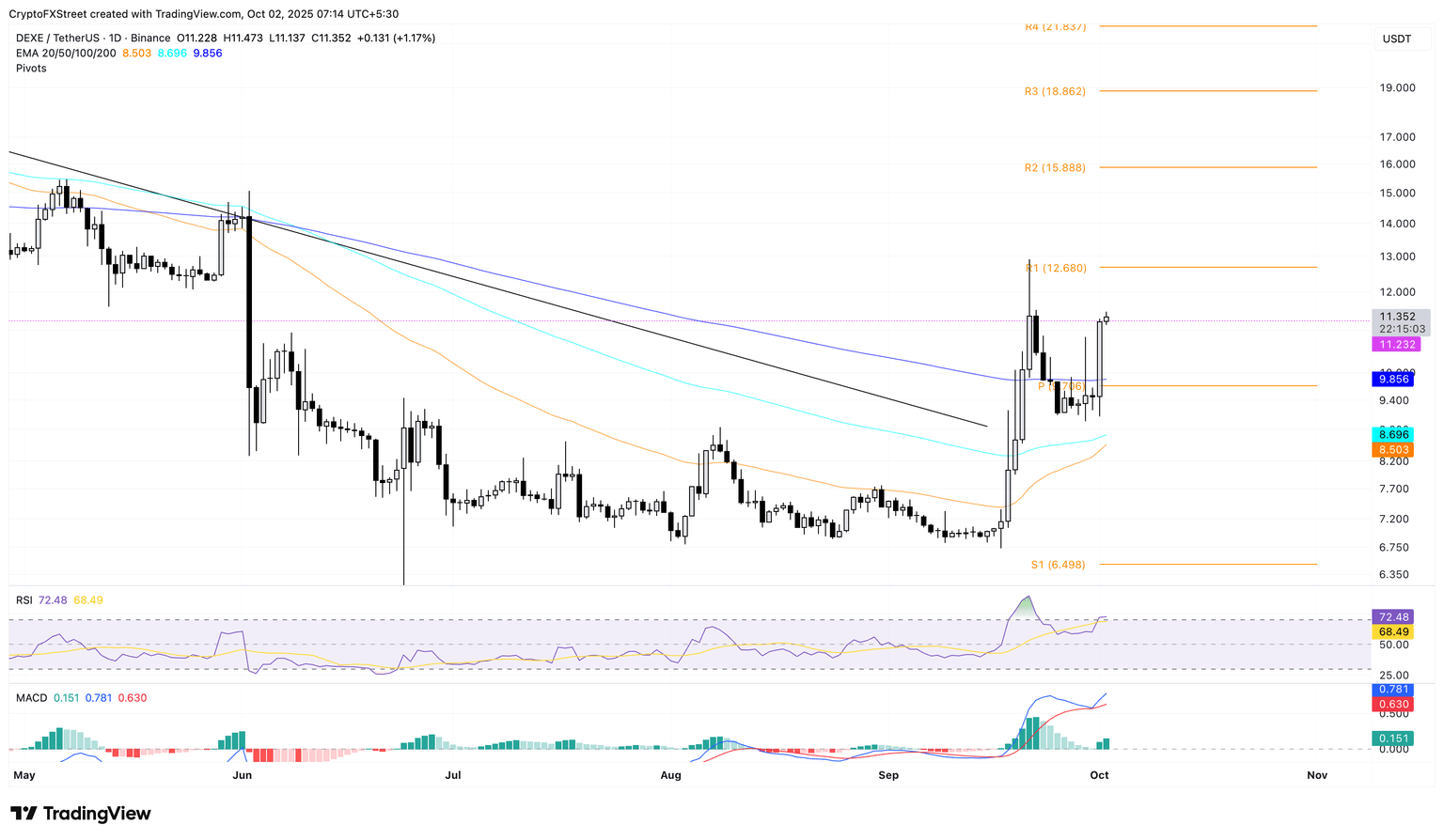 - DeXe extiende ganancias a medida que el impulso alcista se mantiene elevado.