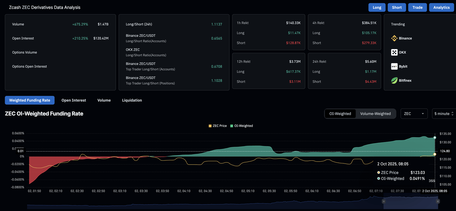 Datos de derivados de ZEC. Fuente: CoinGlass