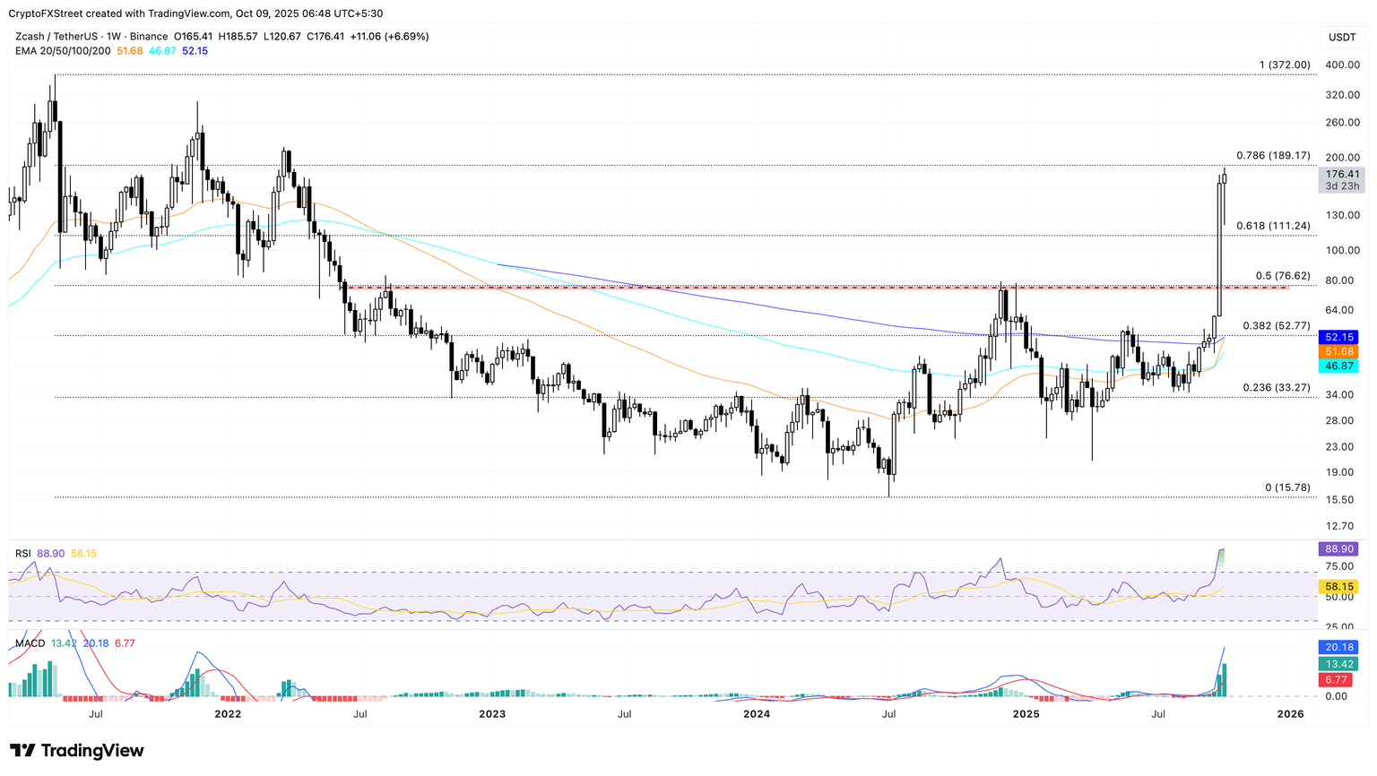 - El rally de Zcash apunta a más ganancias en medio de un inminente Cruce Dorado en el gráfico semanal.