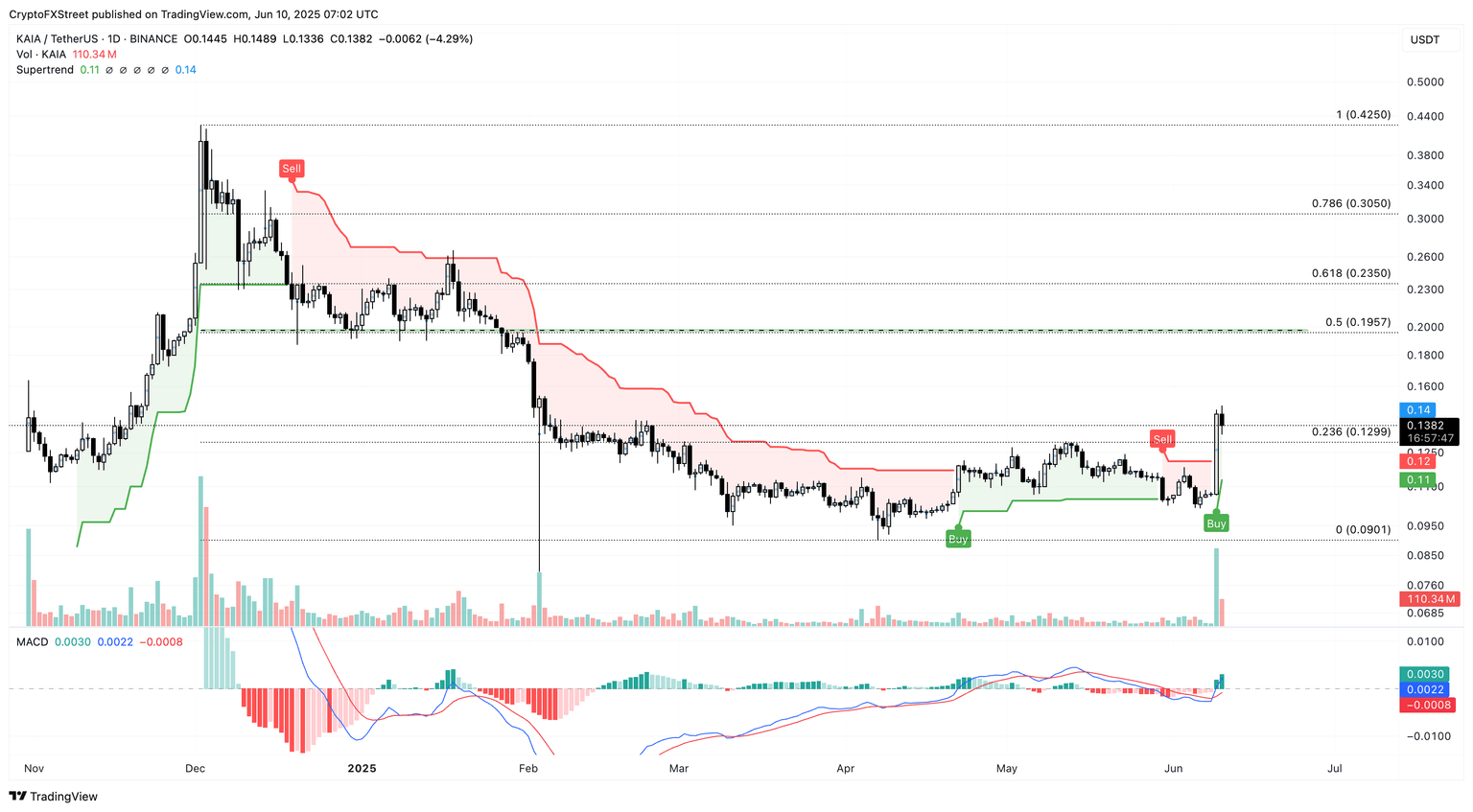 - Kaia retrocede tras saltar un 35% el lunes, ya que su presidente promete una stablecoin vinculada al won coreano.