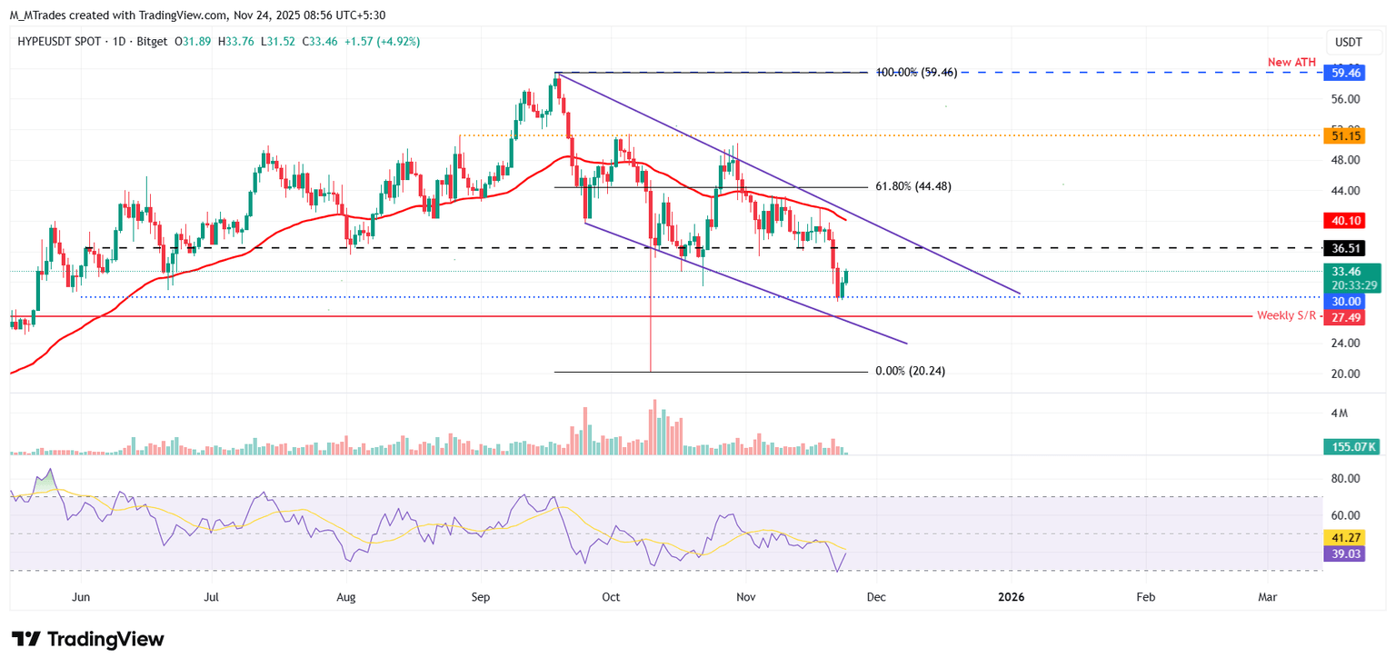 - El precio de Hyperliquid extiende su recuperación tras encontrar soporte cerca del nivel psicológico clave de 30 durante el fin de semana.
