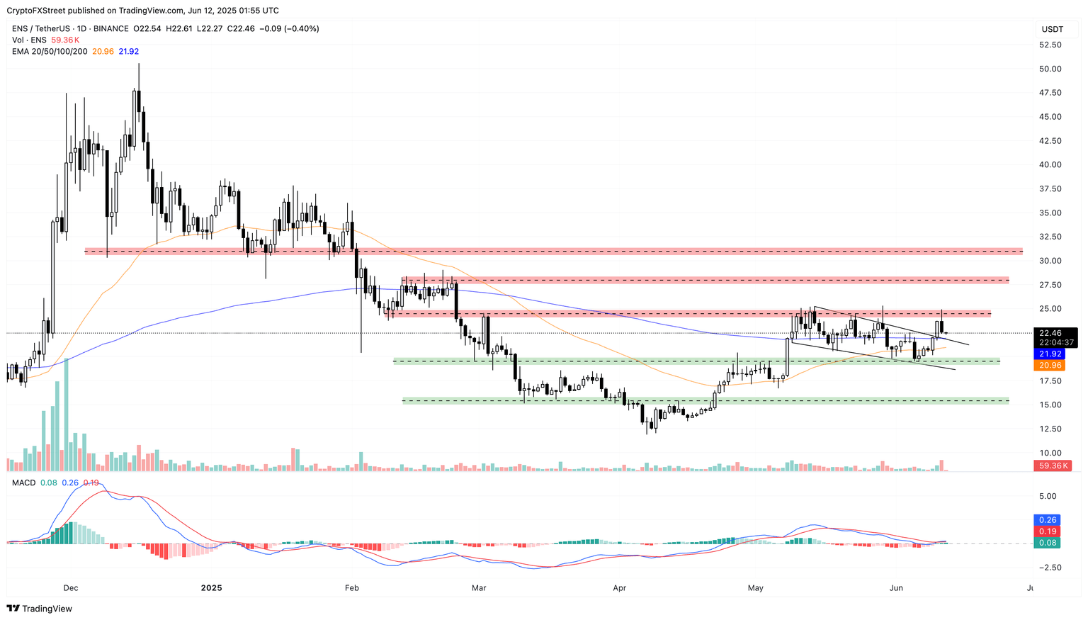 Si ocurre una reversión posterior a la prueba en ENS, resultando en un empuje limpio por encima de 25$, los inversores podrían apuntar a la zona de 28$.