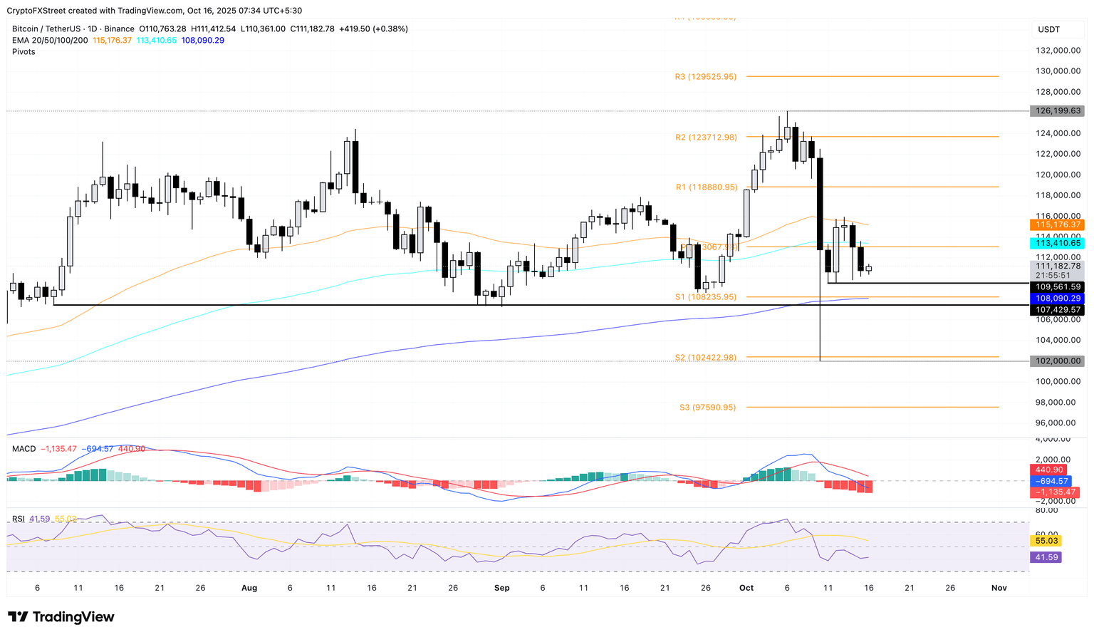 Si BTC extiende la recuperación intradía, podría probar la media móvil exponencial (EMA) de 100 días en 113.416$.