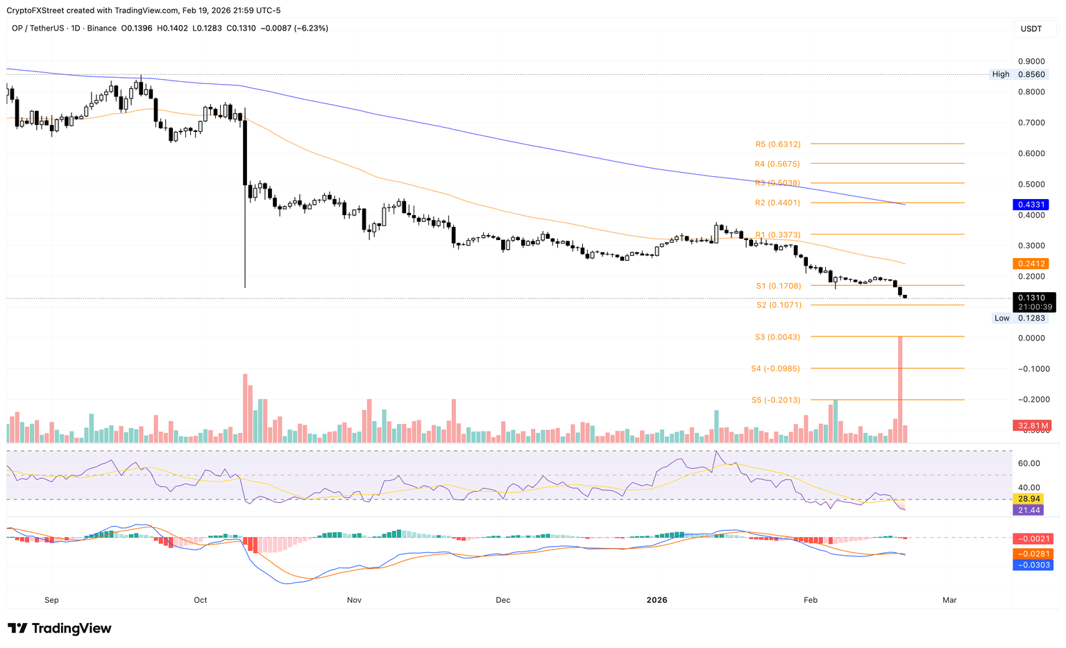 - Optimism ha caído más de un 25% hasta ahora esta semana, acercándose al nivel de 0.100$.