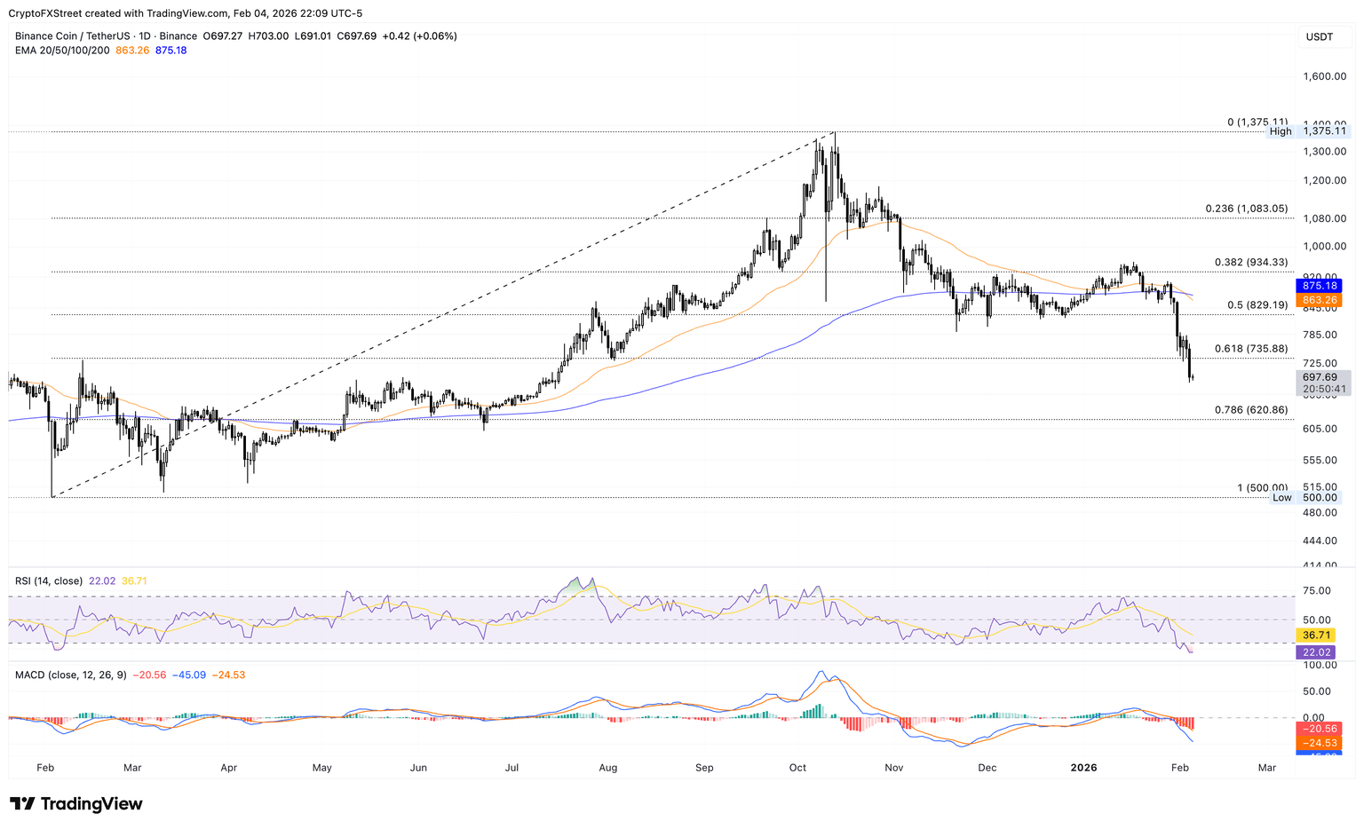 - BNB cae por debajo de 700$ después de perder más del 7% el día anterior.