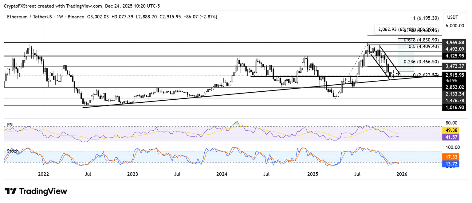2025 marcó una pausa en el bajo rendimiento de ETH en relación con Bitcoin, una tendencia que duró más de dos años. Sin embargo, no todo fue positivo al principio, ya que el par se desplomó en el primer trimestre a un mínimo de cinco años de 0.01766, un nivel que no se había visto desde enero de 2020.
