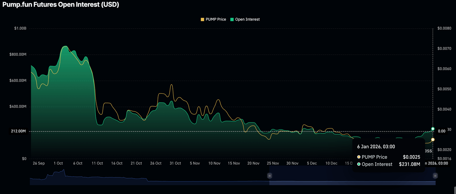 Mientras tanto, el interés minorista en PUMP ha aumentado, aunque gradualmente, desde el comienzo del año. Los datos de CoinGlass muestran que el interés abierto de futuros (OI) promedia 231 millones de dólares el martes, un aumento desde aproximadamente 207 millones de dólares el lunes y 150 millones de dólares el jueves pasado.