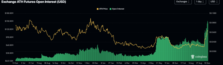 Los datos de CoinGlass muestran que el interés abierto de futuros en Aethir en los intercambios alcanzó un nuevo máximo histórico de 151.32 millones de dólares el martes. El aumento del interés abierto representa nuevo o adicional dinero ingresando al mercado y nuevas compras, lo que podría alimentar el actual repunte del precio de ATH.