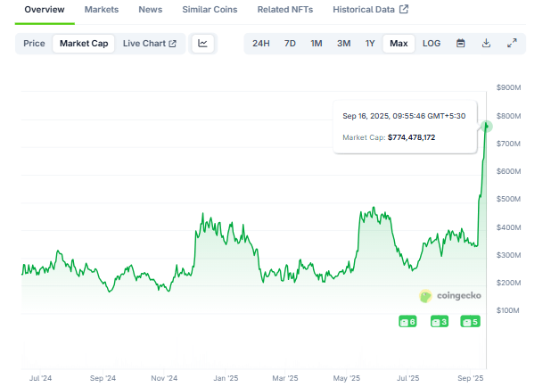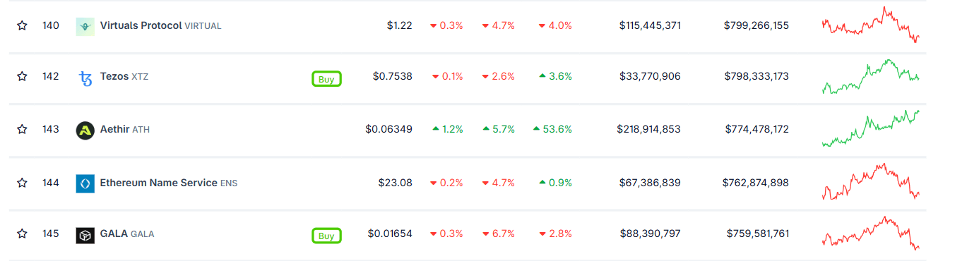 - La capitalización de mercado supera los 774 millones de dólares, superando a altcoins populares como ENS y GALA.