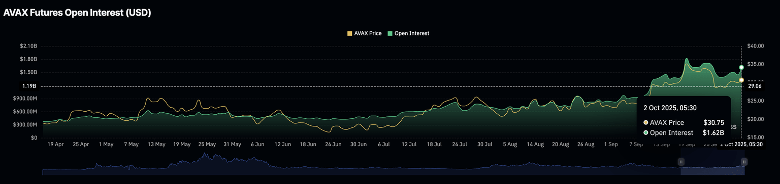 Los datos de CoinGlass muestran que el Interés Abierto (OI) de AVAX se sitúa en 1.620 millones de dólares el jueves, en comparación con 1.450 millones de dólares el miércoles. Esta entrada de capital en los derivados de AVAX indica un sentimiento de riesgo positivo entre los inversores.