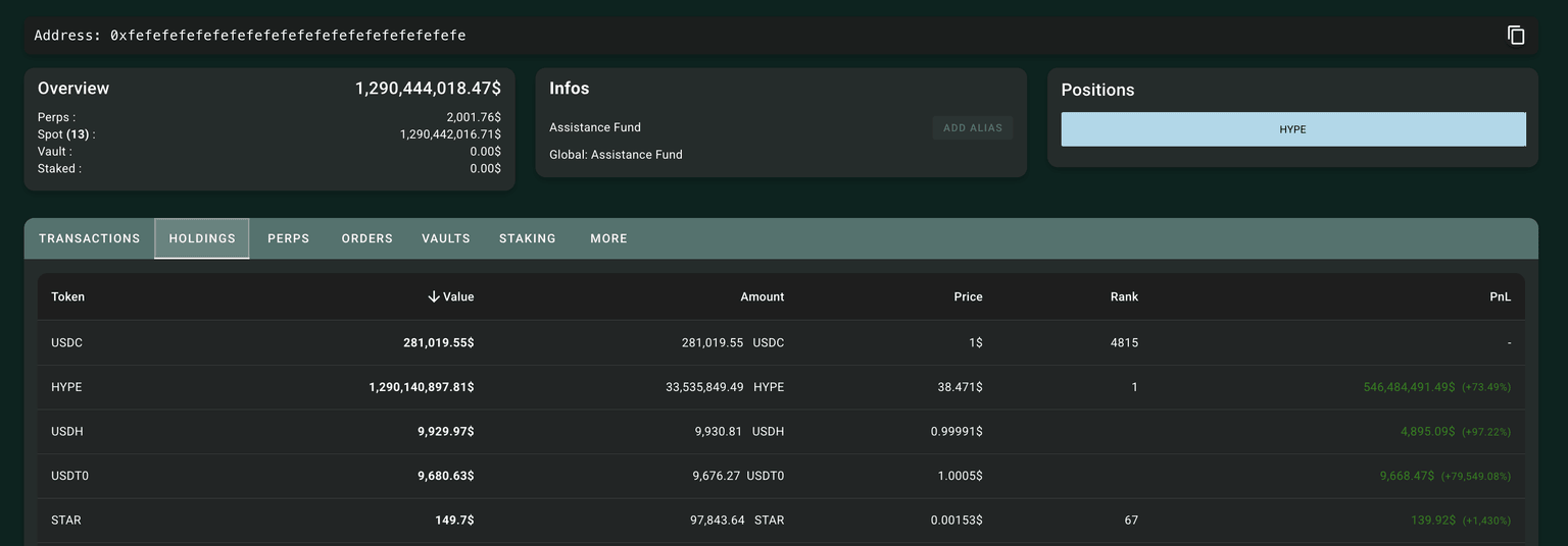 Fondo de Asistencia de Hyperliquid. Fuente: Hypurscann