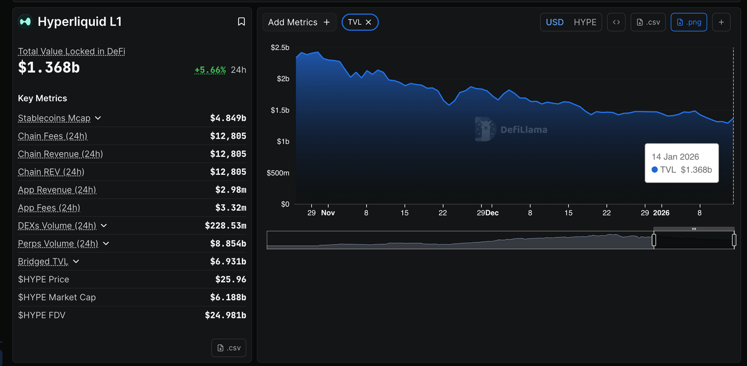 Hyperliquid (HYPE) está mostrando una renovada fortaleza, cotizando por encima de 26.00$ en el momento de escribir el artículo el miércoles, ya que los alcistas recuperan el control tras un período de consolidación. La recuperación está respaldada en gran medida por la mejora de los métricas en cadena y el creciente actividad en el mercado de derivados.