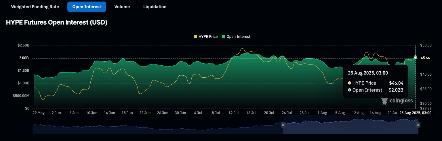 - El Interés Abierto de futuros de HYPE se mantiene estable por encima de la marca de 2.000 millones de dólares, subrayando la creciente demanda minorista.