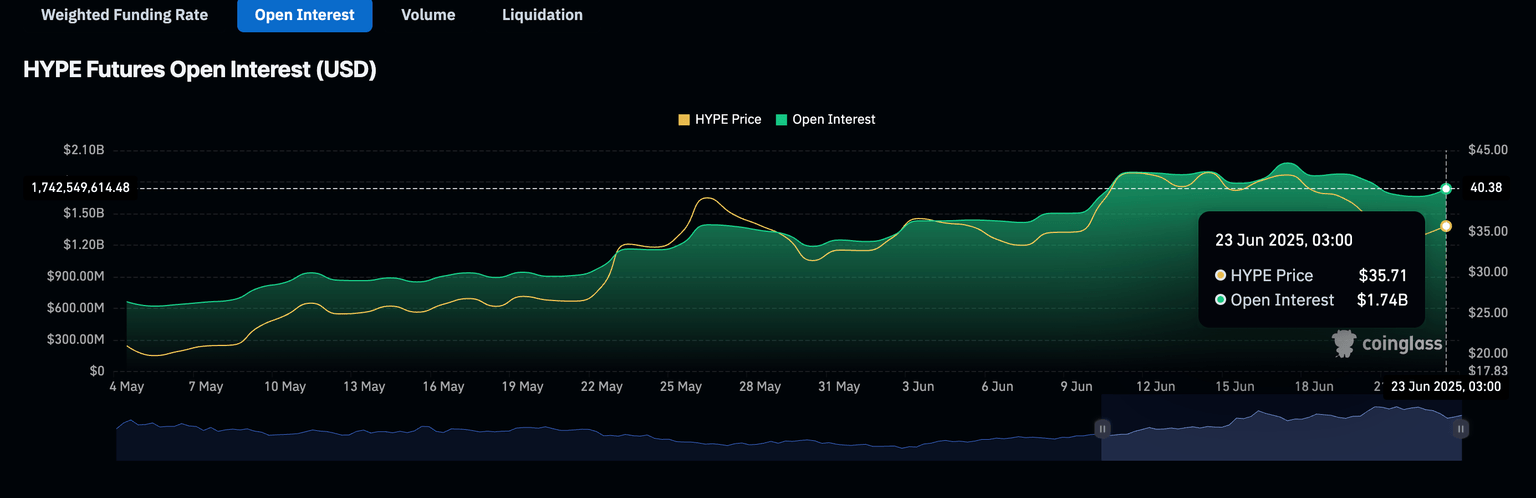 La posibilidad de una reversión de tendencia inmediata por encima de 40.00$ no puede ser ignorada, particularmente con el interés abierto de futuros de HYPE manteniéndose elevado en alrededor de 1.740 millones de dólares. Un interés constante en el token podría aumentar la demanda de HYPE, potencialmente eclipsando la presión de venta y allanando el camino para un aumento significativo en el precio.