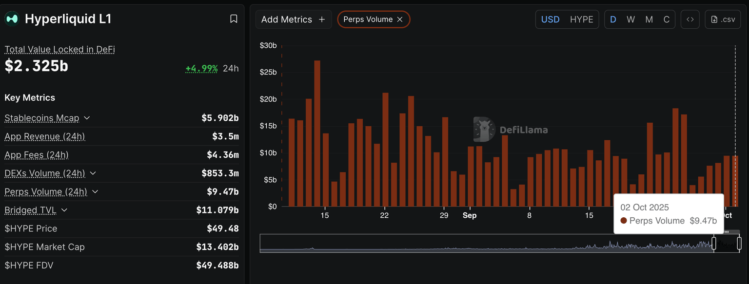 - El volumen del DEX perpetuo de Hyperliquid se dispara a 9.47 mil millones de dólares a medida que mejora el apetito de riesgo.