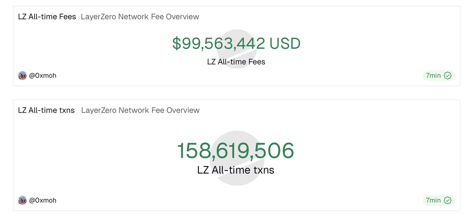 LayerZero mantiene una demanda constante como un protocolo de interoperabilidad de blockchain, mientras que el mercado cripto más amplio enfrenta salidas de protocolos importantes hacia los intercambios. Los datos del panel de Dune muestran que las tarifas totales de LayerZero ascienden a 99.56 millones de dólares, acercándose al hito de los 100 millones de dólares hasta el viernes.