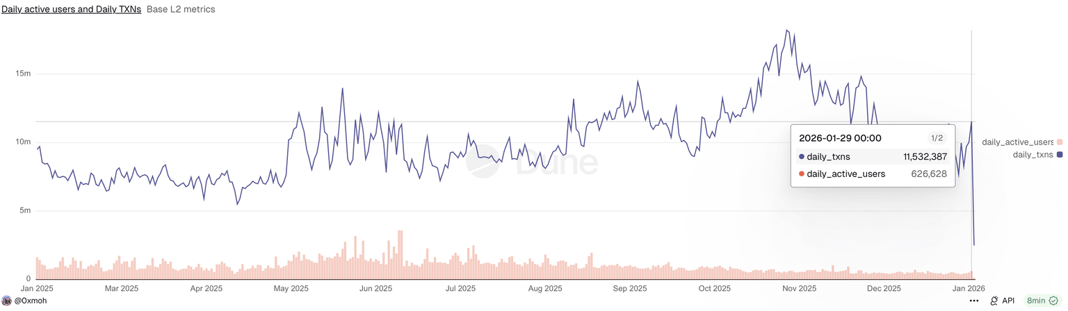 Al mismo tiempo, las transacciones diarias se situaron en 11.53 millones el jueves, recuperándose de 7.68 millones la semana pasada. Mientras tanto, la tendencia de usuarios activos diarios se mantiene por encima de 500,000, aumentando a 626,628 el jueves. La demanda constante durante el último mes refleja el fortalecimiento de la red de LayerZero.