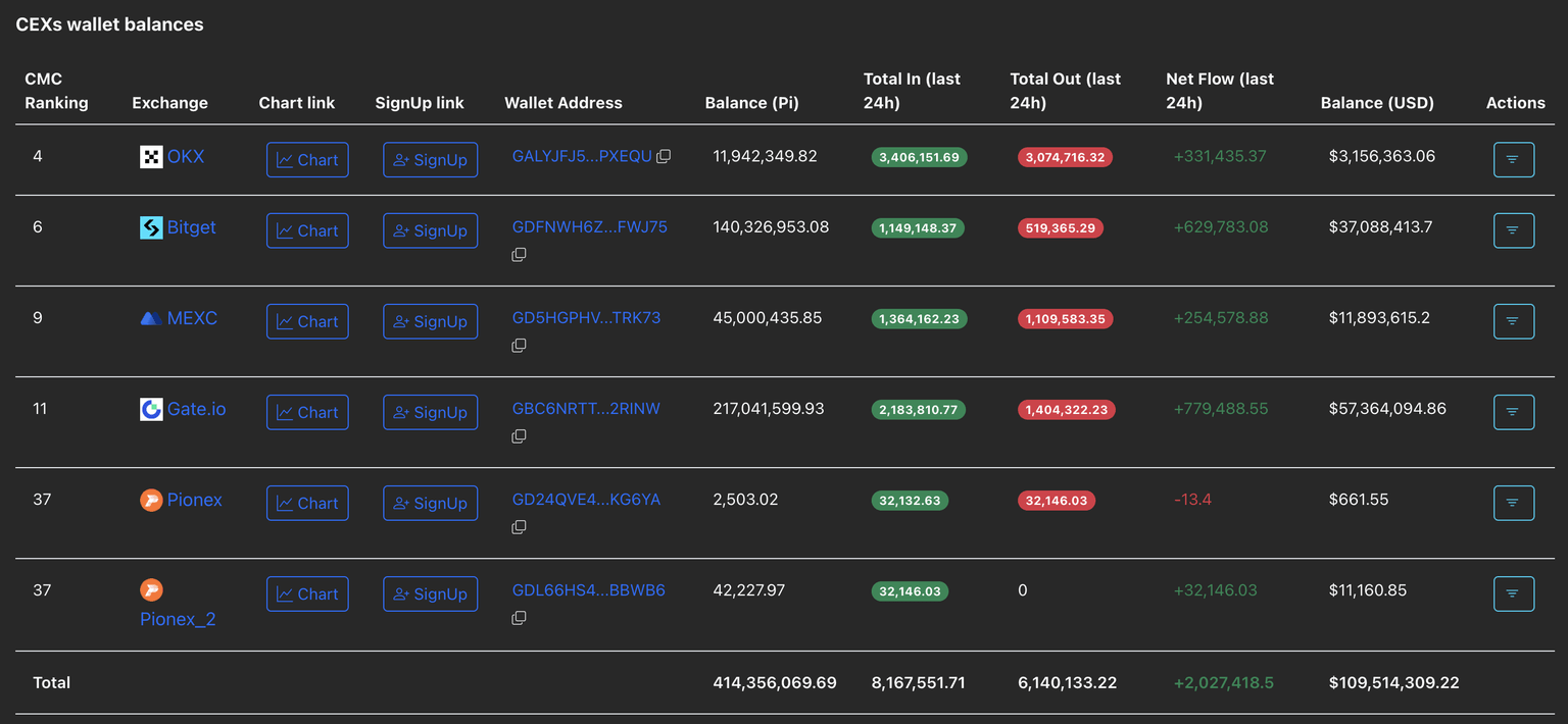 - Los saldos de las carteras de los CEX registran una entrada de 2 millones de PI tras la reciente migración a la mainnet de 2.69 millones de Pioneros.