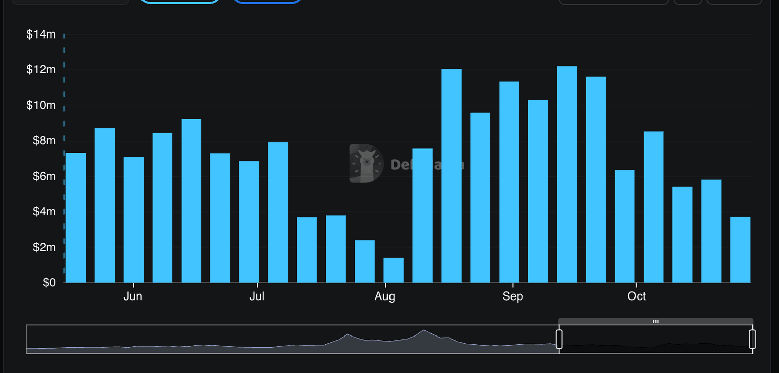 Sin embargo, la tendencia ha sido a la baja desde entonces, con el conteo de ingresos promediando 3.7 millones de dólares hasta ahora esta semana. La fuerte caída se produce en medio de una corrección más amplia en el mercado de criptomonedas, impulsada por un sentimiento de aversión al riesgo derivado de la incertidumbre macroeconómica, el prolongado cierre del gobierno de Estados Unidos (EE.UU.) y la falta de catalizadores de precios dentro de la industria de criptomonedas.