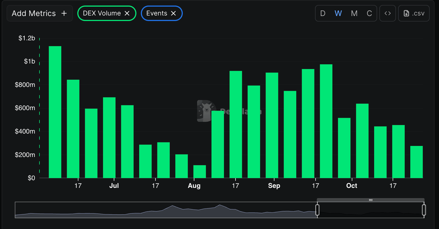 El volumen de comercio de la Plataforma de Intercambio Descentralizado (DEX) de Pump.fun también alcanzó un máximo de 976 millones de dólares en la semana que terminó el 21 de septiembre, el nivel más alto en el tercer trimestre, seguido de una disminución constante a aproximadamente 276 millones de dólares esta semana. La caída en el volumen de DEX destaca la desaceleración de la actividad en el sector de monedas meme, a menudo impulsada por el sentimiento y la euforia. Si la tendencia persiste en los próximos días y semanas, podría volverse cada vez más difícil mantener la recuperación del precio de PUMP, lo que podría desincentivar aún más el interés de los inversores.
