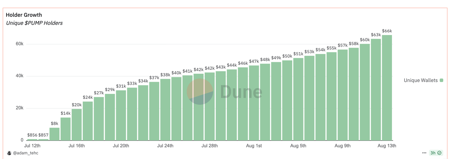 A pesar de la corrección en el precio, métricas clave como el crecimiento de los titulares de tokens están aumentando de manera constante. Con más de 66,000 billeteras únicas, la demanda especulativa de PUMP podría reforzar el control alcista, allanando el camino para una recuperación por encima de la resistencia en 0.0040$.