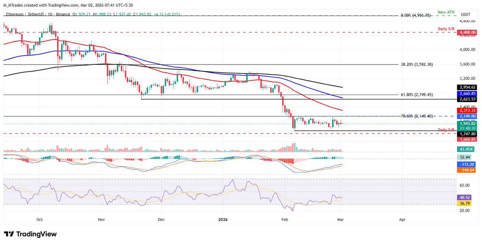 - Ethereum se estabiliza alrededor de 1.950$ después de ser rechazado por el límite superior de consolidación la semana pasada