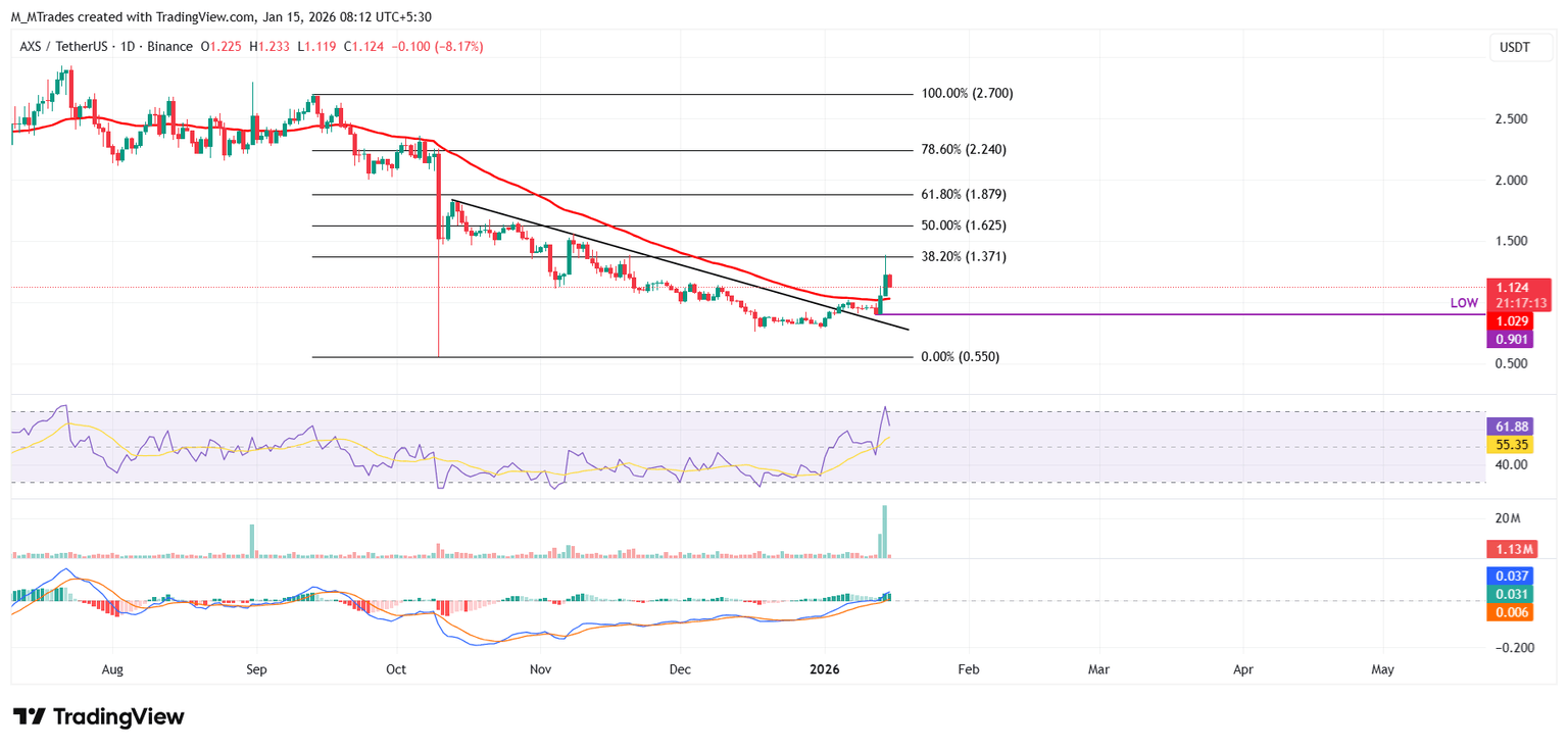 Sin embargo, si AXS se recupera, podría extender la recuperación hacia el nivel de retroceso de Fibonacci del 38.2% en 1.37$.