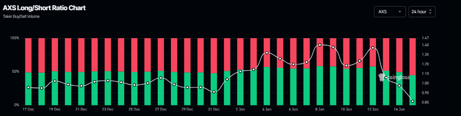 Además, según los datos de Coinglass, la relación larga-corta de Axie Infinity es de 0.82 el jueves. Esta relación, por debajo de uno, refleja un sentimiento bajista en los mercados, ya que más operadores están apostando a que el precio del activo caerá.