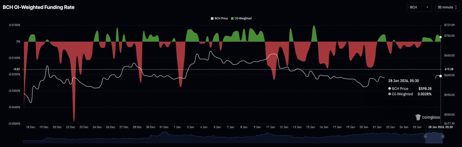 - Los datos de derivados muestran un aumento en el interés abierto de BCH y tasas de financiamiento positivas que reflejan un sesgo alcista entre los traders.