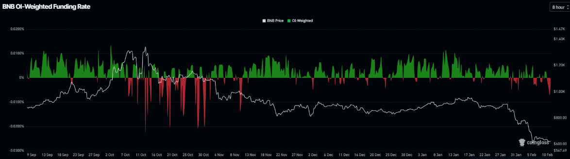 - Las métricas de derivados respaldan el sentimiento bajista a medida que las tasas de financiación de BNB se vuelven negativas junto con el aumento de las apuestas cortas.