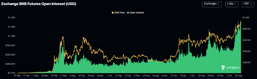Gráfico de interés abierto de BNB. Fuente: Coinglass