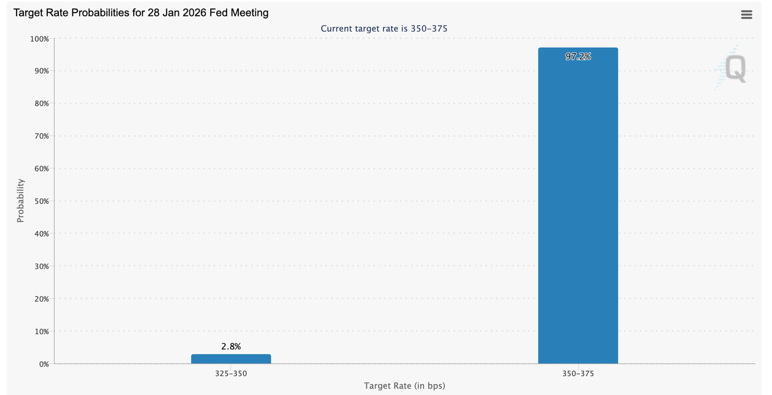 Los precios de las criptomonedas subieron ligeramente después del informe del IPC, con ADA subiendo por encima de 0.40$. Si el rebote se estabiliza, el interés en los activos criptográficos podría aumentar antes de la reunión de política de la Reserva Federal (Fed) a finales de mes; sin embargo, el mercado ha descontado en parte la posibilidad de que la Fed mantenga las tasas sin cambios en el rango del 3.50%-3.75%.