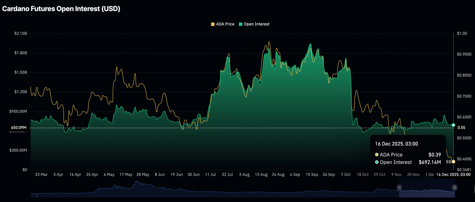 - ADA tambalea bajo una creciente presión de venta en medio de un débil mercado de derivados, con un interés abierto de 692 millones $.
