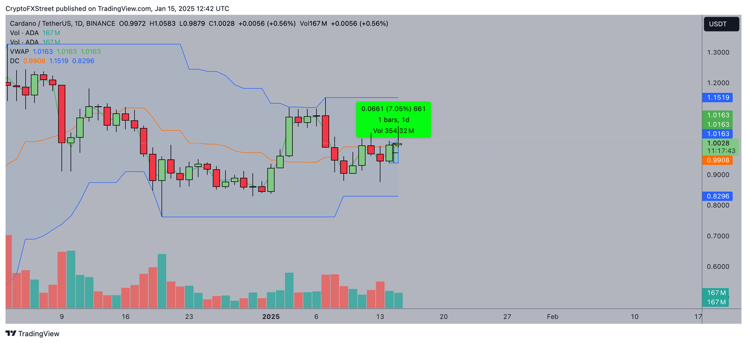 El precio de ADA prueba 1$ a medida que la próxima inauguración de Trump impulsa el momentum del mercado