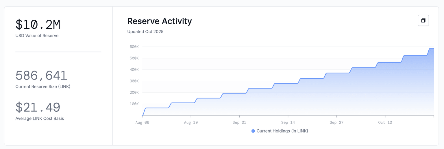 Chainlink Reserve se financia con ingresos de servicios fuera de la cadena y en la cadena, lo que reduce la oferta de LINK disponible en el mercado, aumentando así la demanda. Sin embargo, la reciente recompra de 63.481 LINK el jueves, la segunda mayor entrada desde su creación, ha servido como un colchón, evitando pérdidas adicionales. Hasta el viernes, Chainlink Reserve posee 586.641 tokens LINK, por un valor de 10,2 millones de dólares.