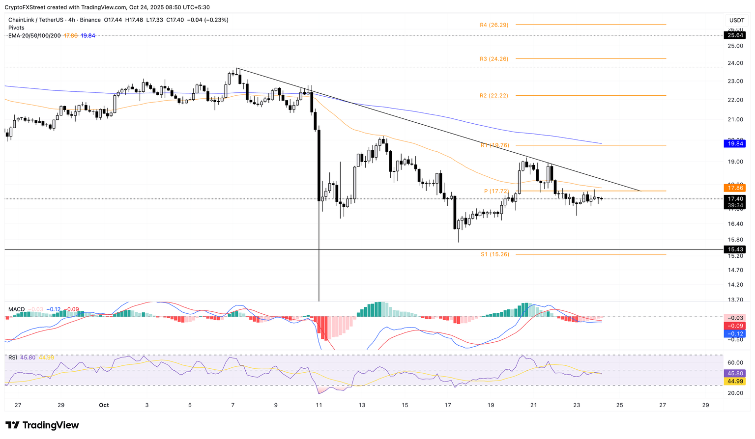 Chainlink baja un 0,50% en el momento de la publicación el viernes, tras la recuperación del 2% del día anterior. El token oráculo lucha por superar el Punto Pivote central en 17,72$, arriesgándose a una caída libre hacia el Punto Pivote S1 en 15,26$.