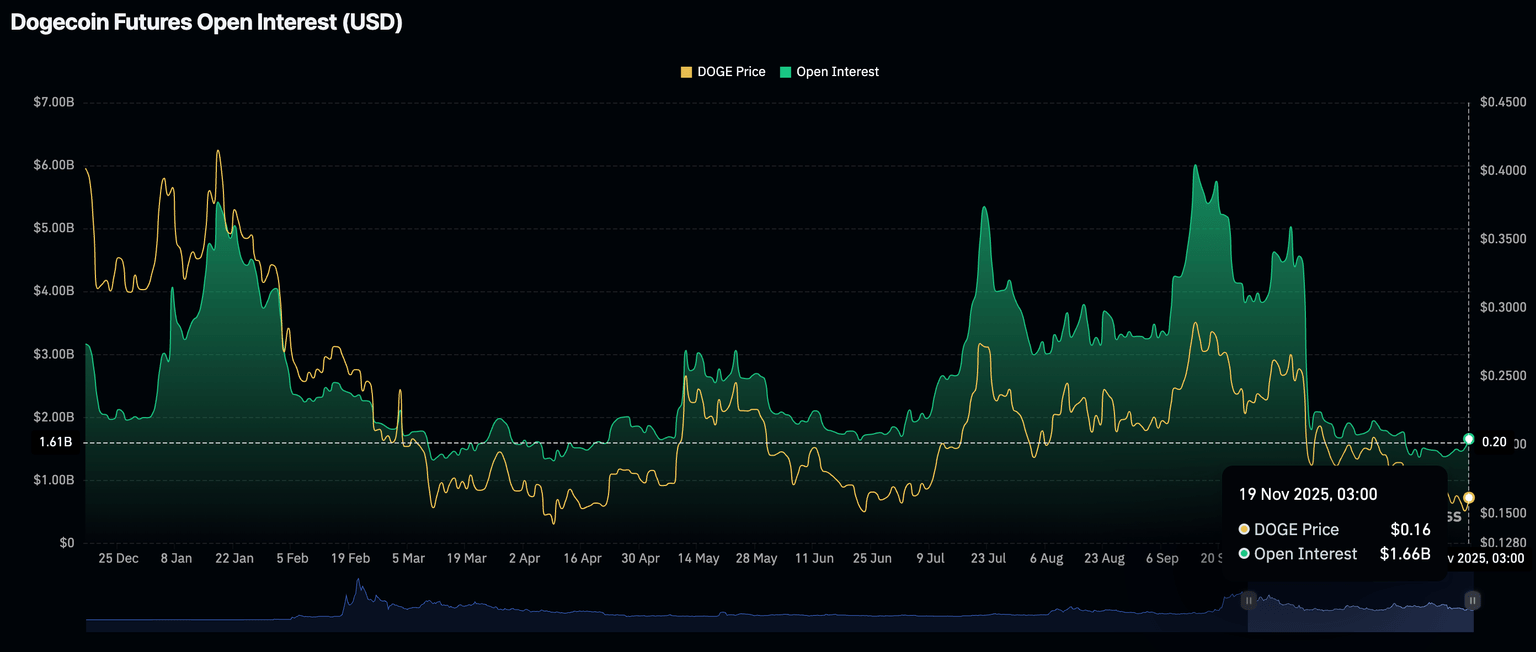- El mercado de derivados de DOGE muestra signos de estabilidad a medida que el interés abierto sube a 1.66 mil millones de dólares.