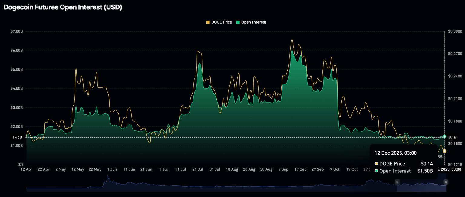 El mercado de derivados de Dogecoin está significativamente reprimido, con un interés abierto (OI) de futuros de 1.5 mil millones de dólares el viernes, en comparación con 4.4 mil millones de dólares el 10 de octubre.