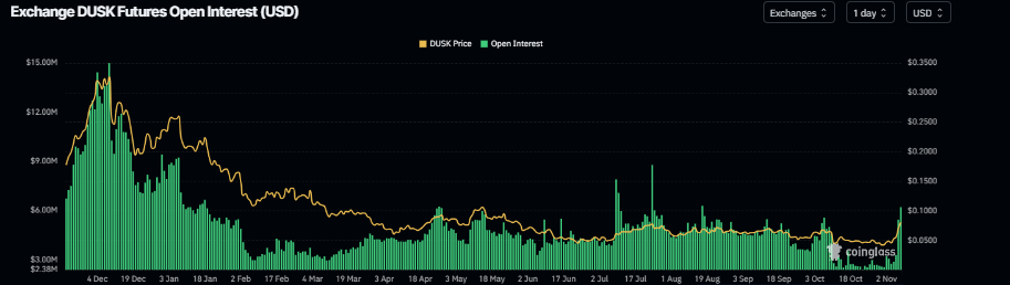 Aún así, al examinar sus datos de derivados, la perspectiva para DUSK sugiere un repunte adicional por delante. Los datos de CoinGlass muestran que el interés abierto de futuros de DUSK en los intercambios aumentó a 6.21 millones de dólares el viernes desde 2.77 millones de dólares el lunes, el nivel más alto desde el 18 de agosto. El aumento del interés abierto representa dinero nuevo o adicional ingresando al mercado y nuevas compras, lo que podría alimentar el actual repunte del precio de DUSK.