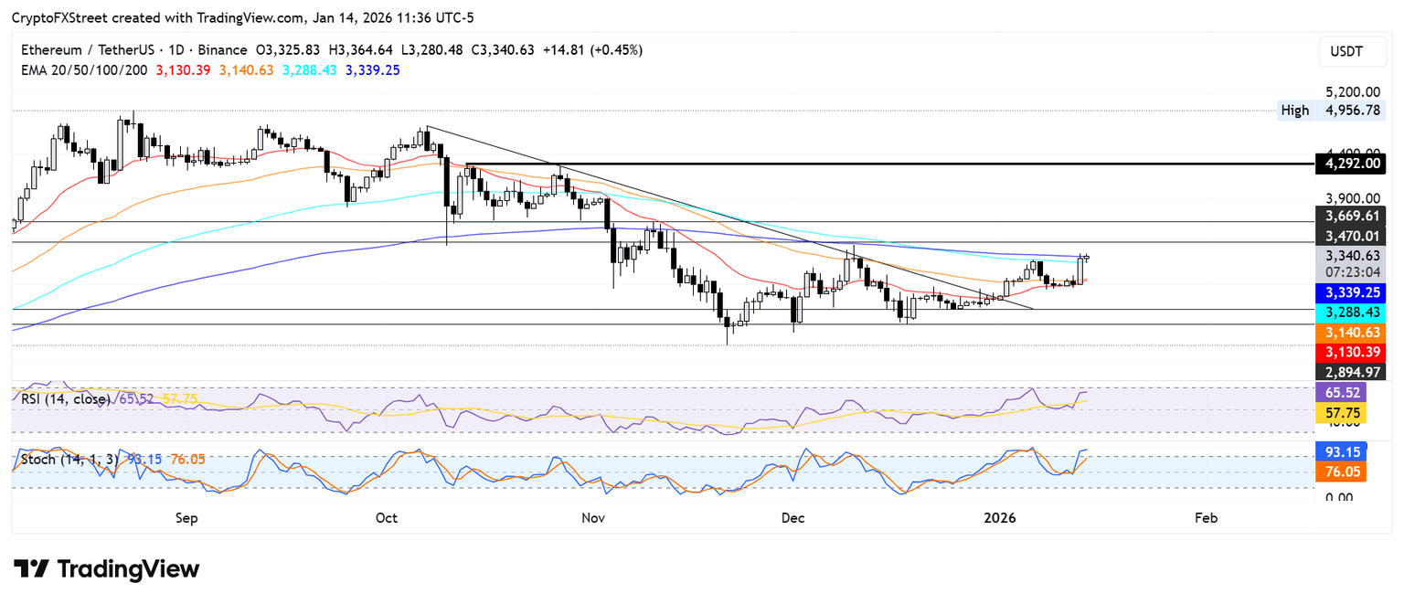 - ETH podría enfrentar el obstáculo de 3.670$ si supera la EMA de 200 días y la resistencia de 3.470$.