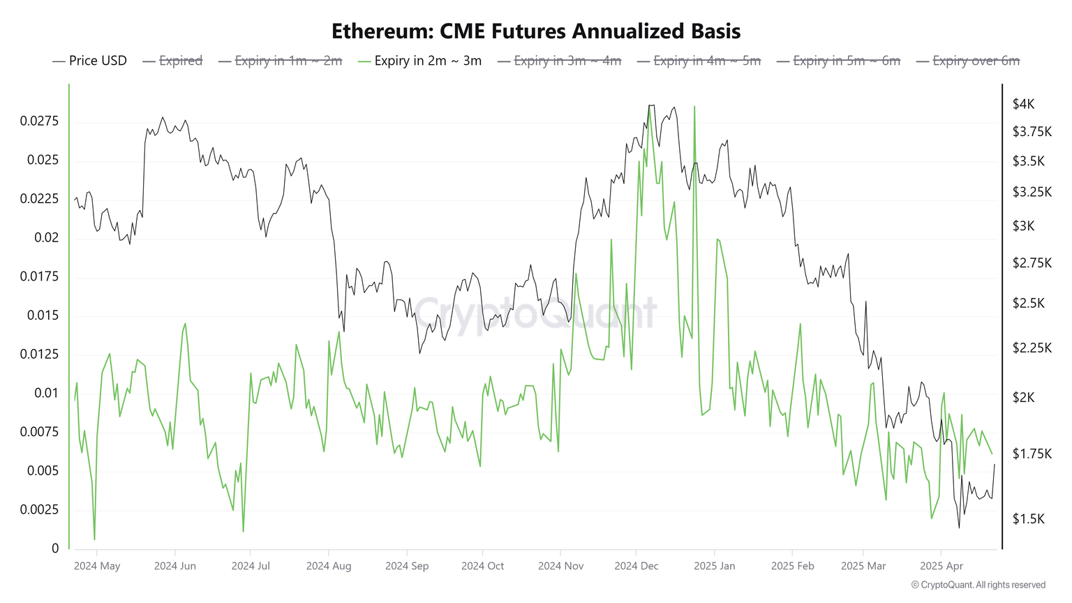 - La base de Ethereum CME ha caído del 20% en noviembre de 2024 a alrededor del 5% en abril de 2025.