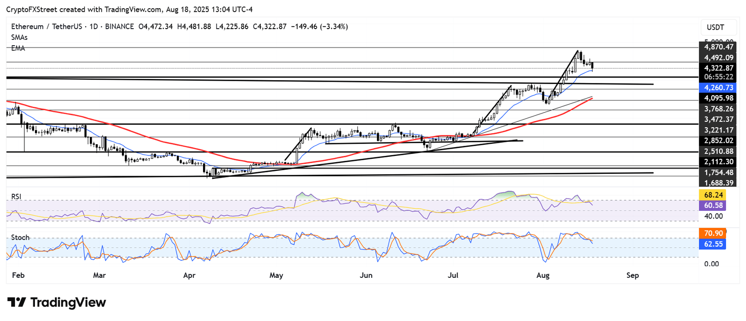 A la baja, la media móvil exponencial (EMA) de 14 días, que se sitúa justo por encima de 4.260$, podría proporcionar soporte a corto plazo.