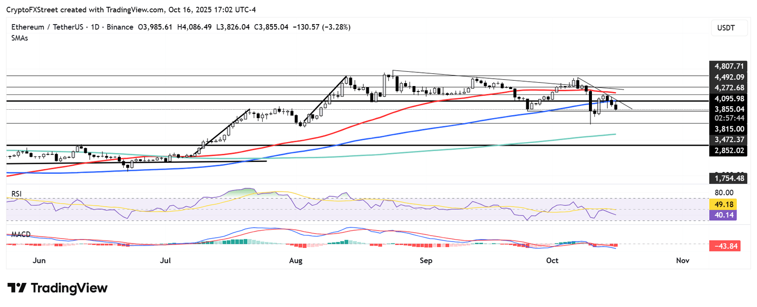 Pronóstico del Precio de Ethereum: ETH ve rechazo en la línea de tendencia descendente y el nivel clave de 4,100$