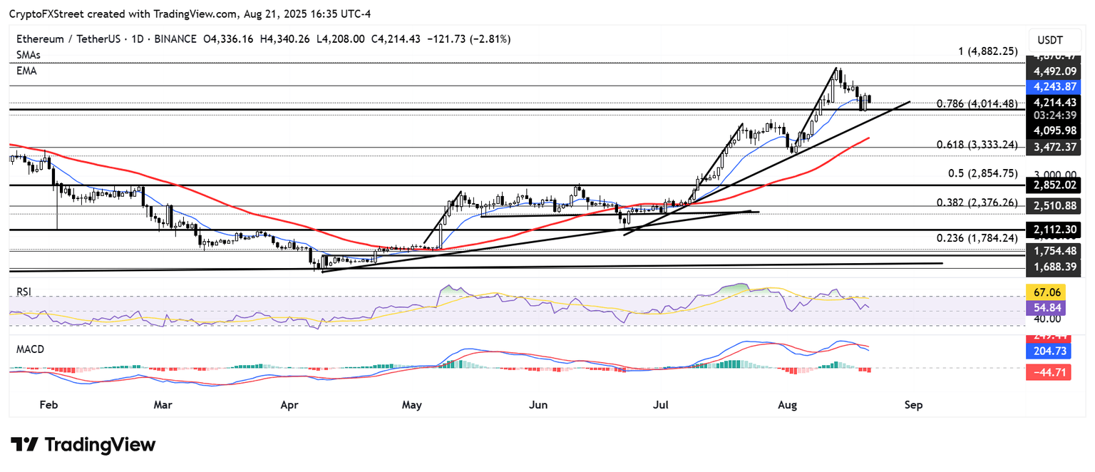 Después de rebotar cerca del nivel de 4.100$, ETH enfrentó un rechazo alrededor de 4.370$ el jueves, justo por encima de la Media Móvil Exponencial (EMA) de 14 días.