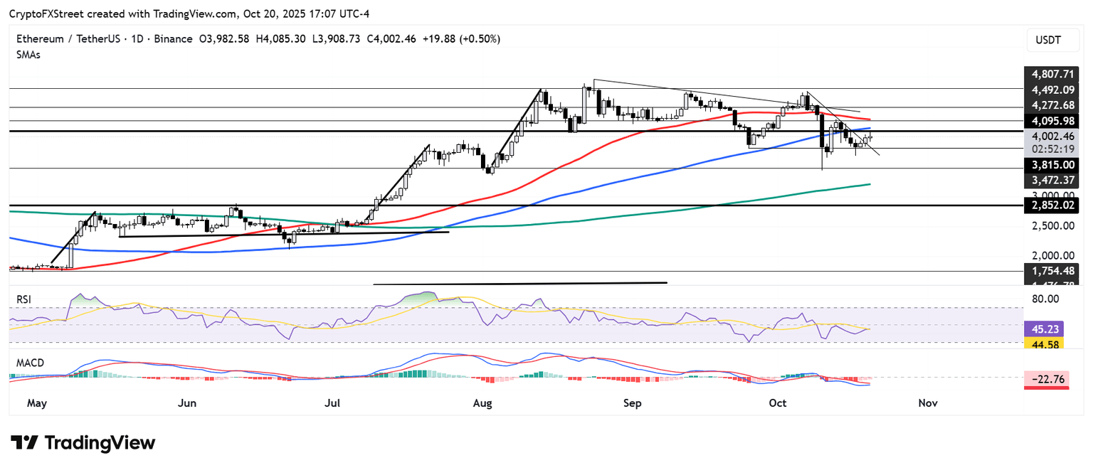 - ETH enfrenta un obstáculo en el nivel clave de 4.100$ después de rebotar en el soporte de 3.815$.