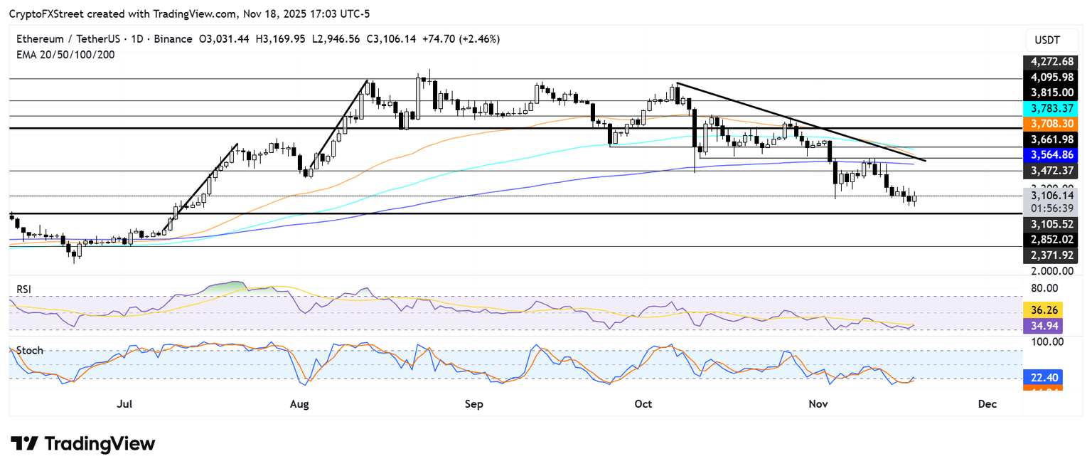 Pronóstico del Precio de Ethereum: ETH intenta mantener una recuperación por encima del soporte de 3.100$
