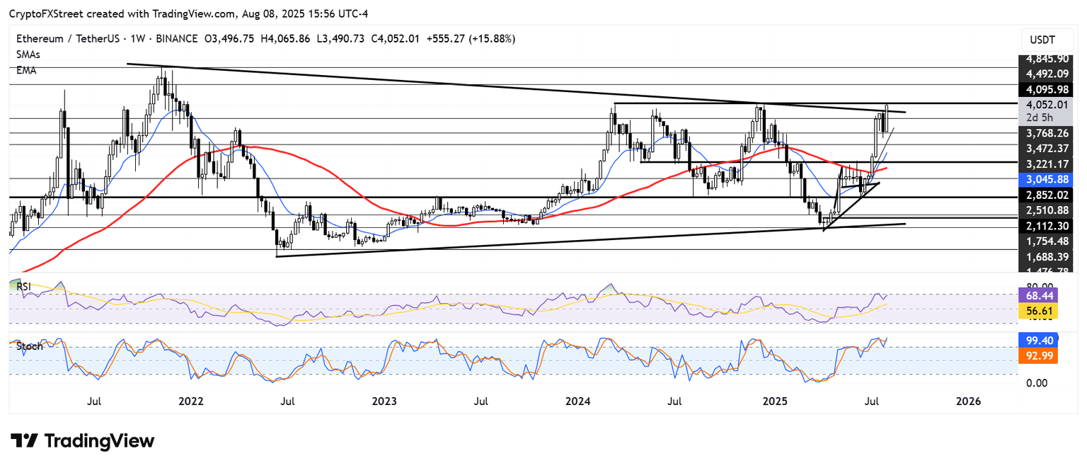 Pronóstico de Ethereum: ETH enfrentará la resistencia de 4.100$, apunta a 4.500$