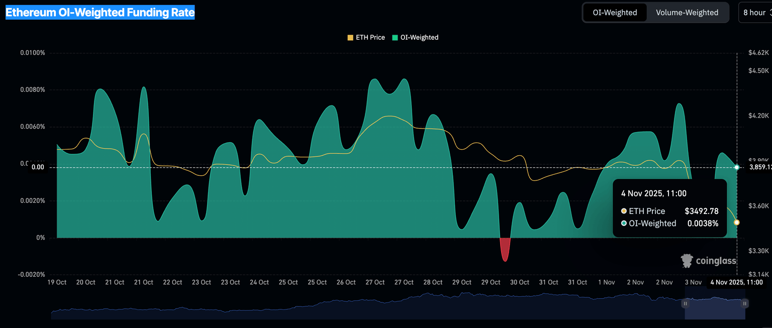 Tasa de financiación ponderada por OI de Ethereum | Fuente: CoinGlass